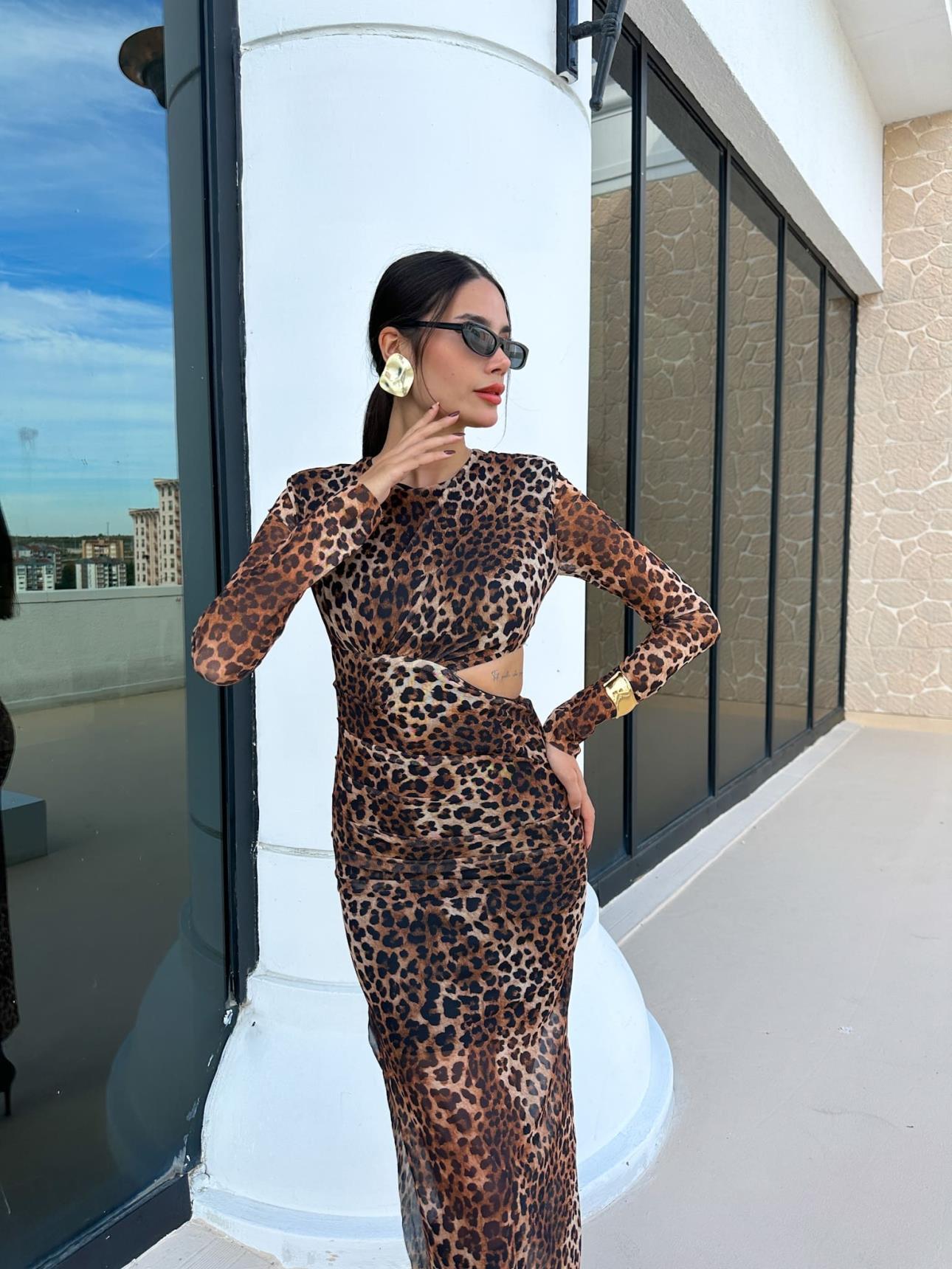 Özel tasarım leopar desenli elbise; Elbisemiz cut out detaylıdır.; Tam kararında, hafif bir yırtmaca sahiptir. Yırtmaç derinliği ortalama 46 cmdir.; Kapamasız bir modeldir.; Omuzlarında vatkası bulunmaktadır.; Yırtmaç bölgesine kadar gelen bir astara sahiptir.; Dar kalıplı bir modeldir, kapamasız olduğu için ara bedenseniz 1 beden büyük tercih etmeniz elbiseyi giyme ve içinde rahat etme açısından sizin için daha iyi olacaktır.; Elbise boyu ortalama 140 cm civarındadır.; Kumaş Bilgisi: %97 Polyester %3 Elastan; Model Bilgisi: 1.70 cm 53 kg.; Göğüs: 80 cm Bel: 65 cm Basen: 95 cm; Çekimde S beden kullanılmıştır.; Ölçümler S bedene göre yapılmıştır.; Siparişleriniz özel kutusuyla gönderilecektir.; Ürünle ilgili merak ettiklerinizi ve beden tercihi konusunda destek ihtiyacınızı " mağazaya sor " butonuyla bizlere iletebilirsiniz.